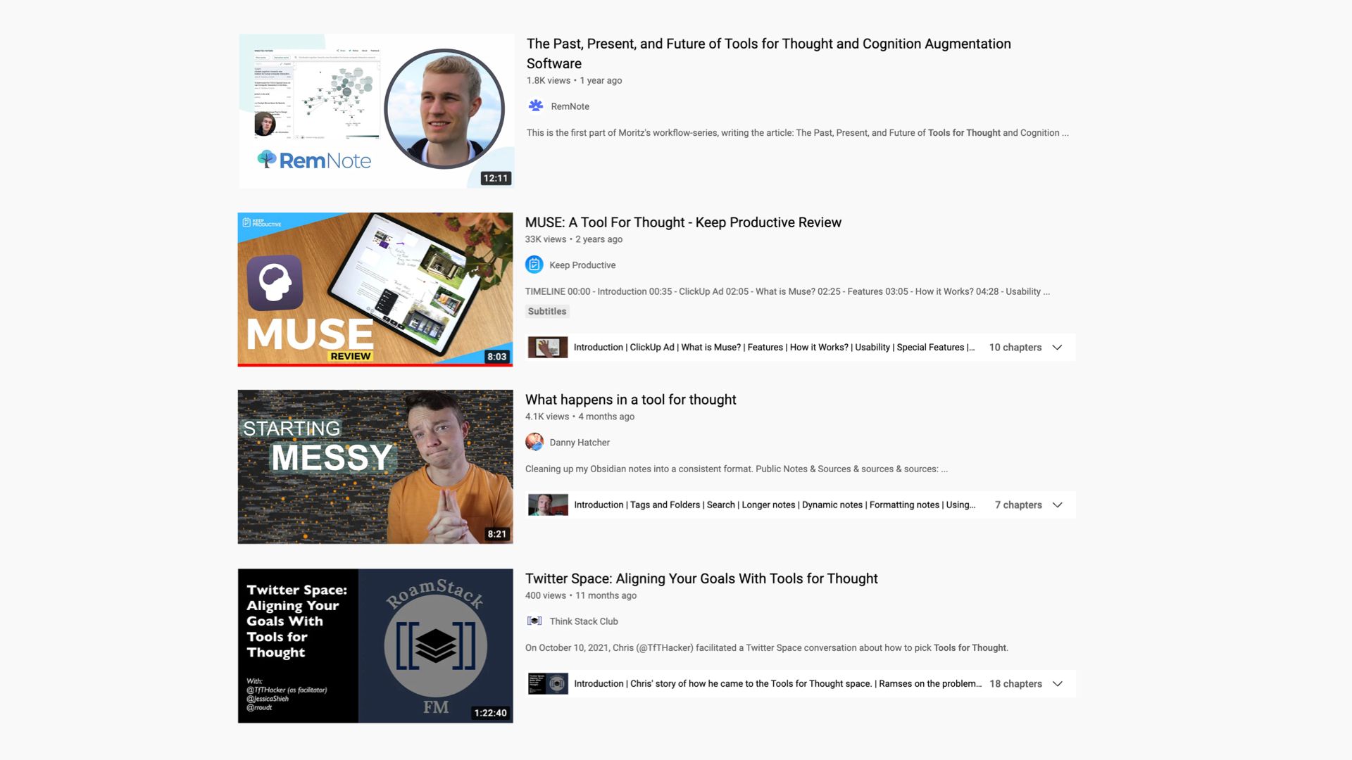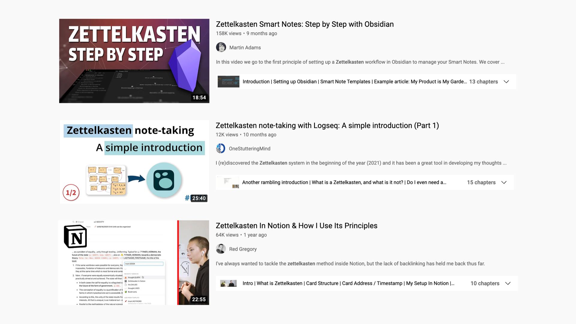 Most of the YouTube thought leaders turn out to be teaching specific practices – like building a Zettelkasten – rather than teaching us specific software.