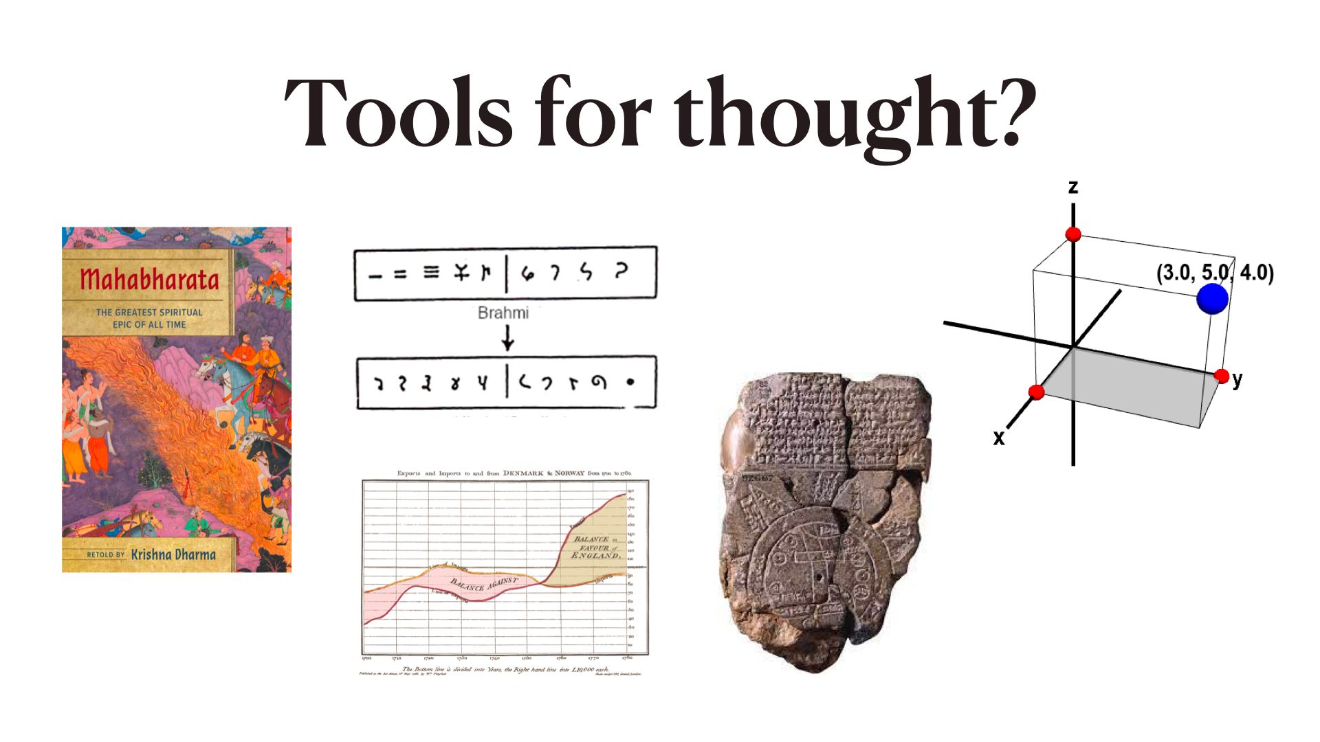 But this is primarily a list of cultural practices and systems; they are techniques – a way of doing things - that enable us to relate to information and representation in new ways. Thus enabling new kinds of thoughts.