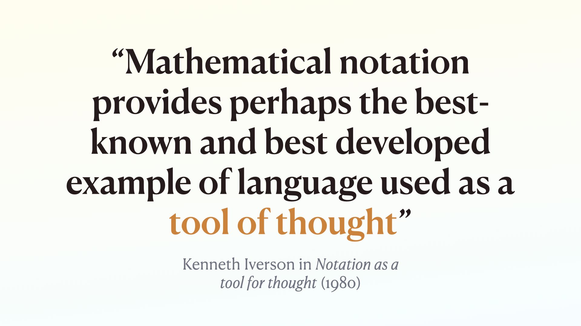 Talking about mathematical notation as the best known and best developed example of a tool for thought.