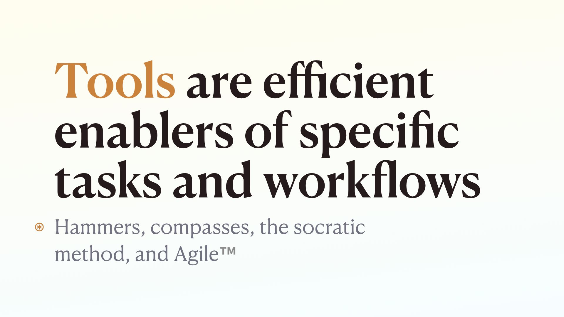You don’t communicate through a hammer or agile. They’re part of a larger context – the medium.