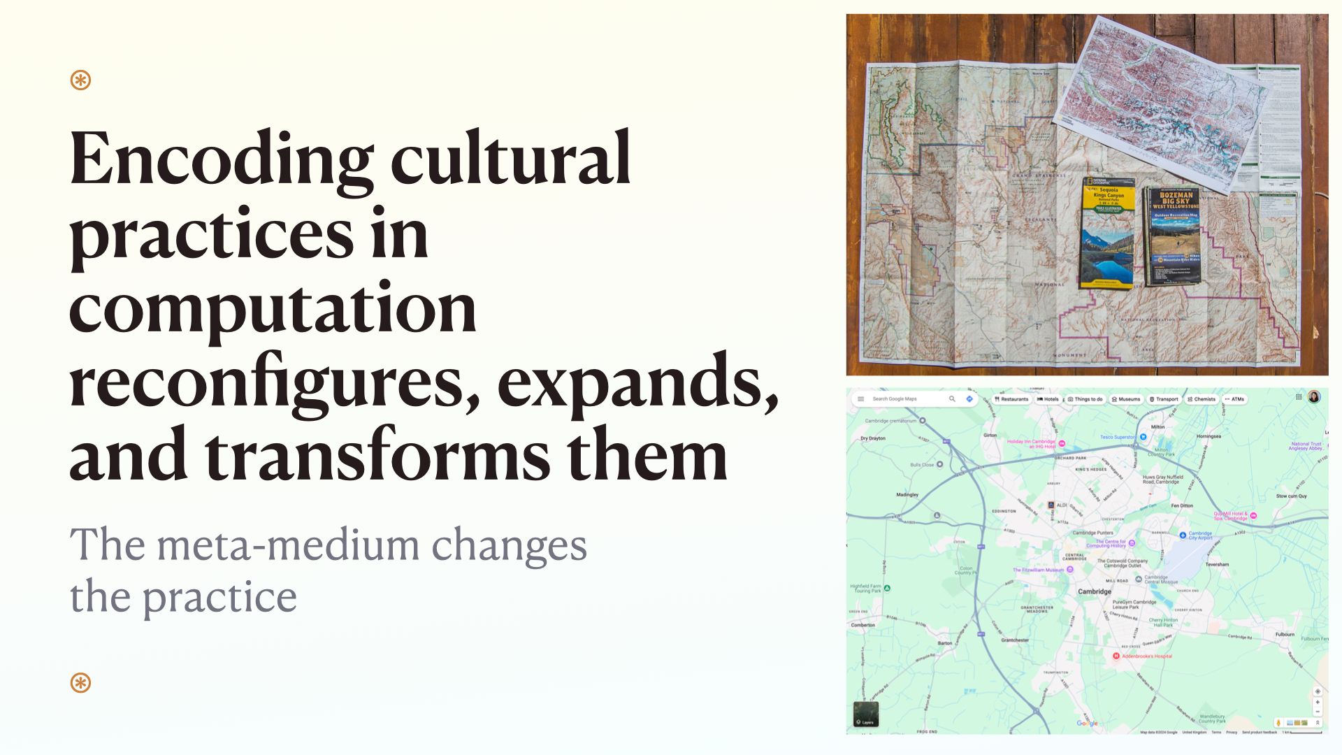 Maps enabled humans to mentally navigate space differently - gave us allocentric views vs. egocentric.