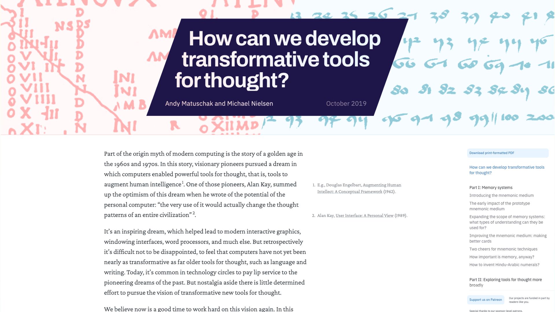 In it they gave readers a sweep through a lot of major thinkers and events in computing history like Douglas Engelbart’s work and Alan Kay, and made a plea for more people to start exploring this space of computing systems that augment the human intellect.