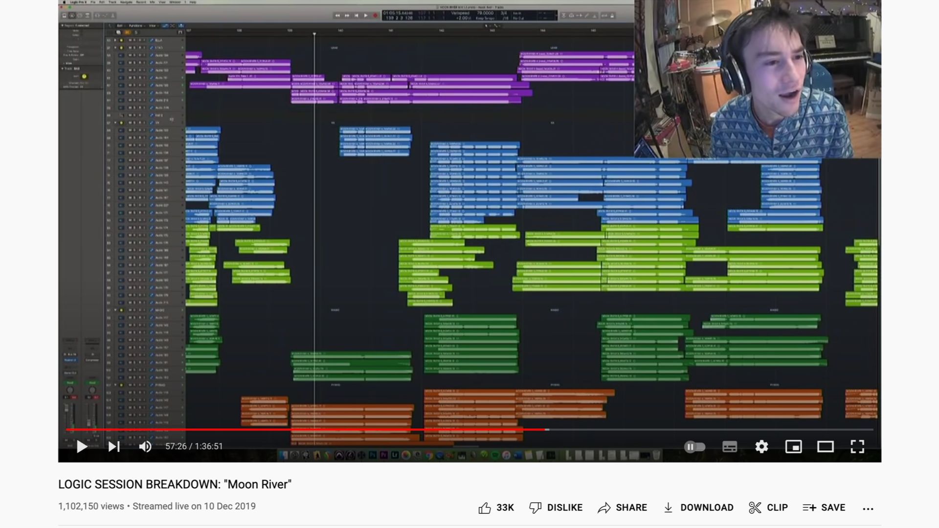 Jacob Collier. Grammy-winning musician showing an extraordinarily complex breakdown of his song Moon River in logic pro.