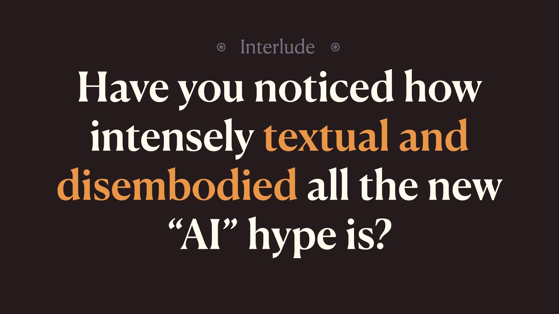And yet we’ve gone about it by an intensely disembodied and textual technique, by literally only dumping text into these models, so that all they know is text.