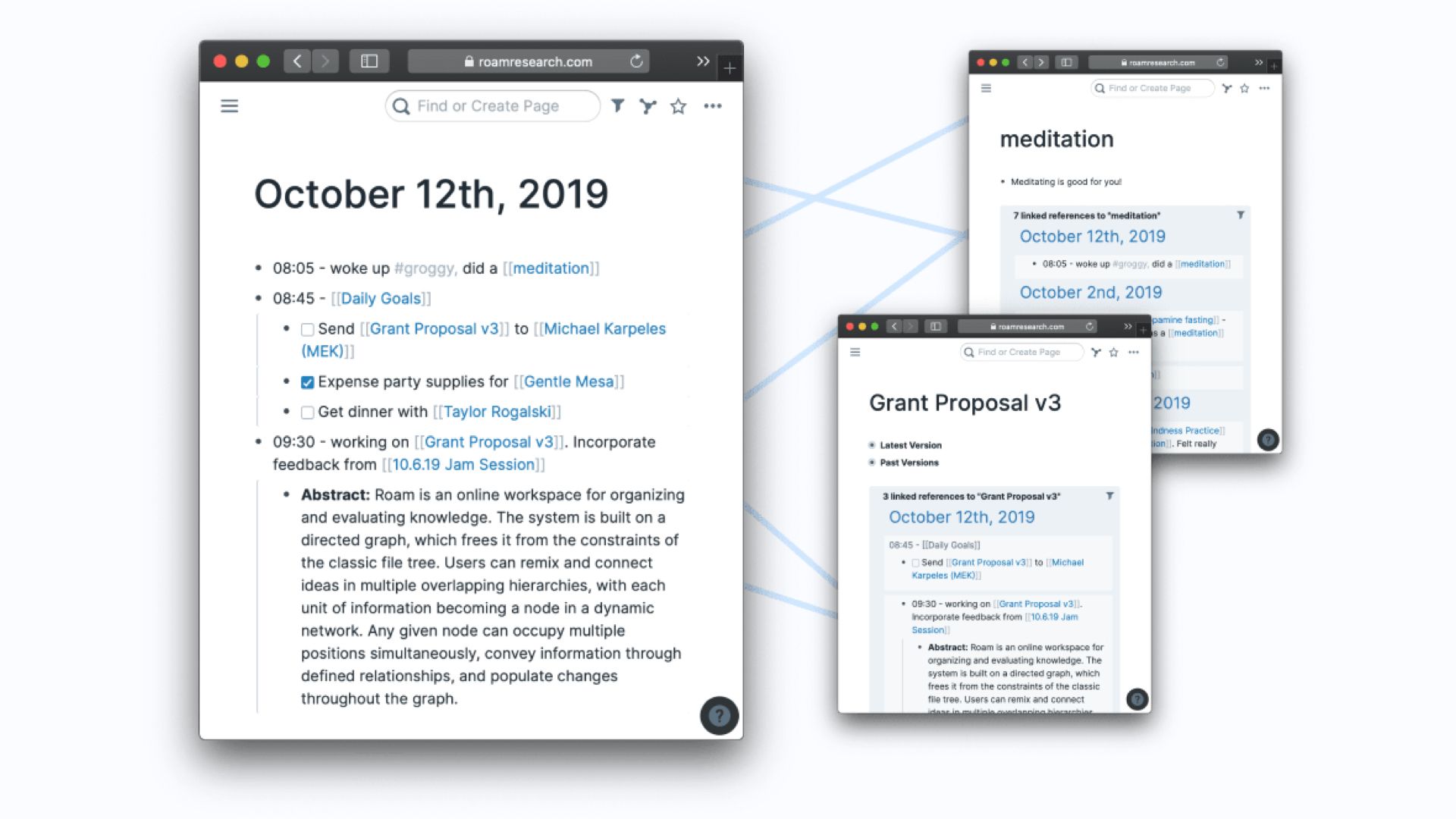 - Used an outliner format where each piece of content is a single node that can be linked to any other node and embedded anywhere else in the graph.